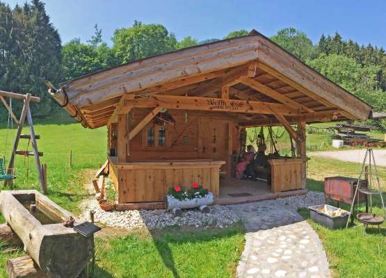 Apropos Forellen Grillen - hierzu bietet sich die kostenlose Nutzung unseres Gartenhäuschens geradezu an. Sollte es abends doch einmal kühler werden, kann man sich von der Terrasse in die gemütliche Hütte zurückziehen. Des Weiteren lädt die Liegewiese vor dem Haus zum Entspannen, Lesen und Verweilen ein. Im Übrigen gibt es WLAN auf der Terrasse.